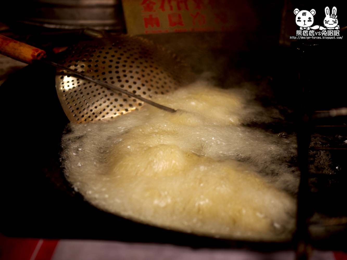 那時熊痞痞問老闆這怎麼賣,老闆說一片是5元,就看你想要吃幾片囉!後來熊痞痞點了20元來嚐鮮,老闆就迅速的將鹹粿炸下鍋,沒想到下鍋時的情景超讚的,忍不住的拍了起來!