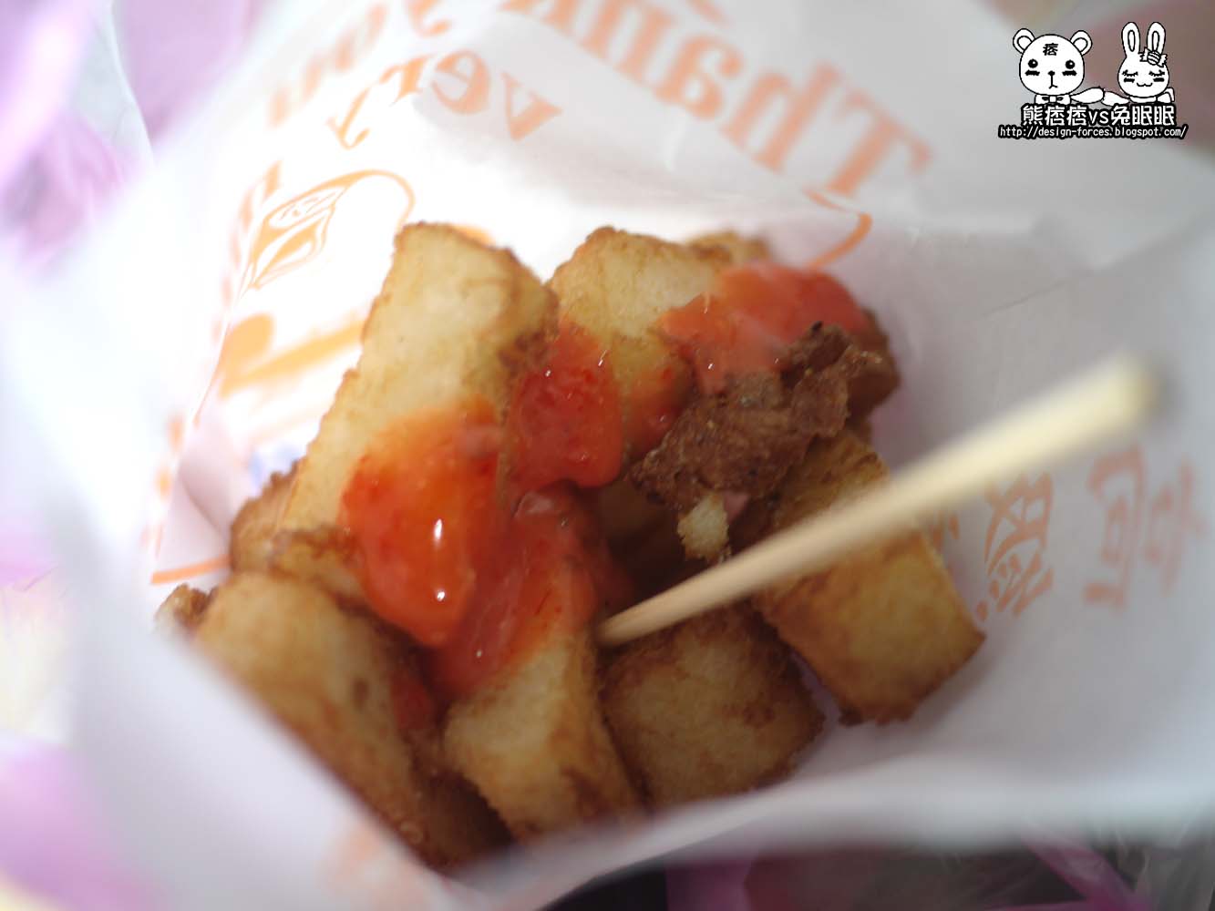 每到假日,人來人往的遊客,總會被這不起眼的小店給吸引住,進而好奇的發問:「這到底是在炸什麼啊?」,若碰巧遇到當地鄉親也在購買時,通常鄉親都會熱情的告訴遊客,這是炸蘿蔔糕啦,很好吃喔!(那時候熊痞痞去拍照…就被誤認為遊客了=3=)。