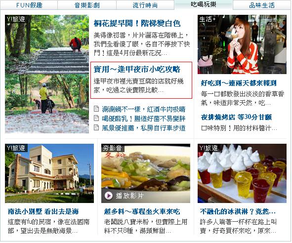 【2013/4/4】逢甲夜市豆腐登上奇摩首頁記錄(第49篇)