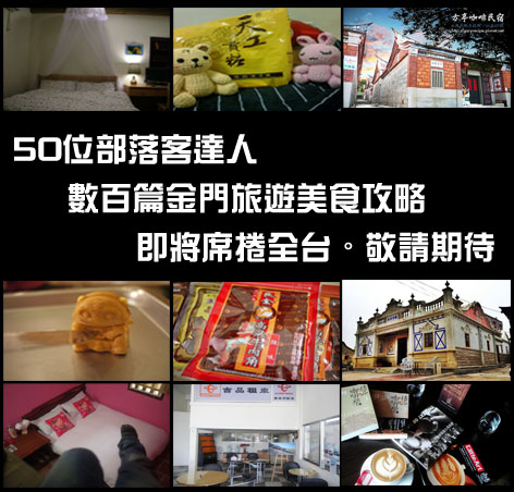 不好意思,這篇有點緊急趕出,不完善之處請見諒,其他部份商家尚未列入~~有些贊助內容仍在洽談中,如果您有興趣加入此計畫,歡迎與我聯絡,我希望能透過雙方的媒合,贊助商能給部落客一些基本的尊重,部落客也能替我們一起來行銷金門!別忘了!現在是網路時代!大家要去旅遊前,大多都會先上網去搜尋相關資料!只要有網路還在的一天,這些經典的金門攻略將能永遠流傳下去!
