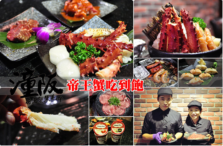 【台中帝王蟹燒烤吃到飽】潼阪帝王蟹黑毛牛頂級燒烤,$1350吃到飽,帝王蟹腳、大干貝、生蠔、菲力沙朗等吃到飽,台啤18生啤酒無限暢飲、飯後甜點哈根達斯,還有帥哥美女桌邊服務。文心路三段旁(文末優惠)