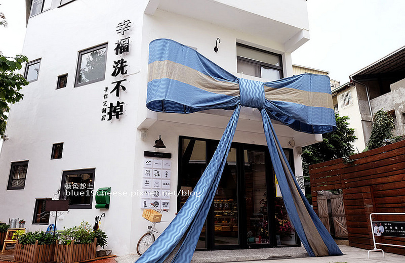 在IG上看到”幸福洗不掉”將自家繫上了一個大大的藍色漂亮蝴蝶結,覺得浪漫又吸睛,把房子繫上蝴蝶結當禮物送給另一半也很浪漫驚喜,白色建築、乾淨庭院及花草,店家介紹說之後庭院會有配合的店家市集,很好的環境,不過這邊不太好停車,可能要停外面一點再走進來。