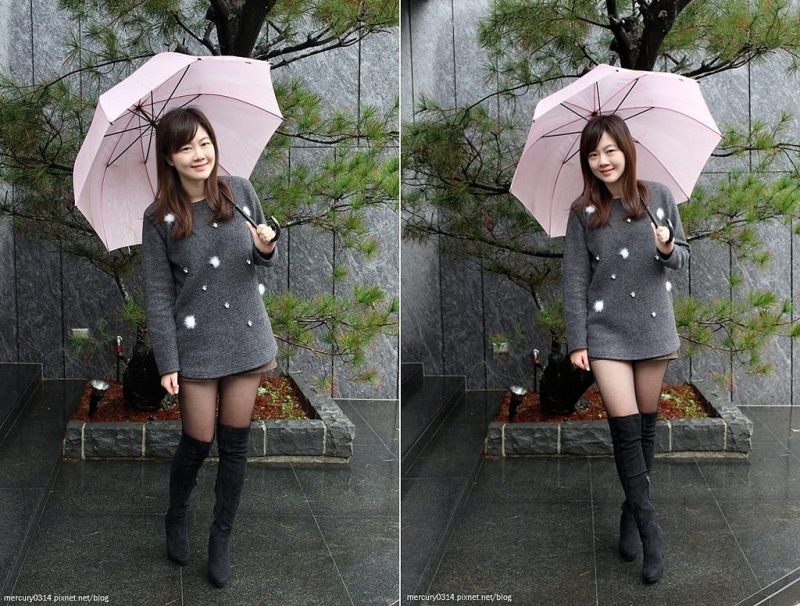 下半身搭配短毛呢褲,褲管若隱若現, 我最喜歡”在別人念我穿這麼短時, 掀起上衣說我有穿褲子好嗎”的得意感 ((有夠變態,再搭上新買的絨毛過膝靴,這是前陣子達芙尼在特價出清逛到的, 姐覺得自己的腿好長。