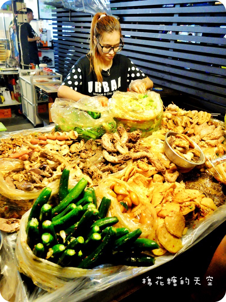 感覺幾乎每一項都是攤位上的招牌,而且除了辣脆腸之外~每一樣的價位竟然都不超過30元!CP值這麼高~連我都心甘情願的排隊了。尤其是這裡的青菜類~大家記得一定要夾,在選的時候只要夾一些到盤子裏當代表就可以了,然後你就會發現~老闆在幫你夾的時候好像不用錢似的拼命往裡頭塞青菜,也太佛心來著了啦!