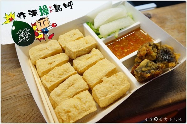 炸彈操島呼=炸彈臭豆腐,炸臭豆腐/皮蛋,你也可以吃混蛋,小凉並沒有在罵人喔XD想要可以吃到臭豆腐和皮蛋兩種滋味,你就直接跟帥哥老闆說,老闆來一份混蛋!!