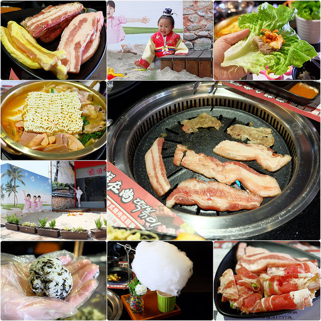 糕糕在尚韓國烤肉┃台中韓式料理:韓式烤肉$499元吃到飽,韓國流行八色豬五花、部隊鍋、拳頭飯,可以體驗穿韓服拍照樂趣,小孩有沙坑可以玩沙,鄰近環中路和龍富夜市