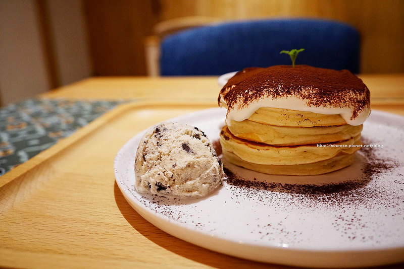 提拉米蘇鬆餅 $200,賣相漂亮,有4層鬆餅,旁邊一球冰淇淋,鬆餅現點現煎需等待喔~鬆餅吃起來比較濕潤一點帶點黏,比例上再微調會更好,也許你剛好喜歡這樣的口感喔^^