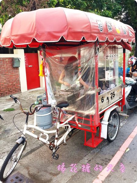 聽聞這家雞蛋糕店已經很久了~但是之前一直沒有機會遇到這位老妹開攤的時間,這天遠遠看到攤子推到定點營業,讓我直接騎著車車衝過去!呵呵~想想還真有點危險~
