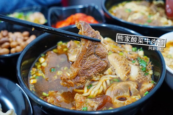一般牛肉麵湯頭比較鹹香,好比大里的提督府牛肉麵,熊家的湯頭一喝有讓人驚豔,因為偏甜又濃郁,喝起來完全不過膩,一問之下,原來老闆娘是外省人關係,所以調味會比較有特色。