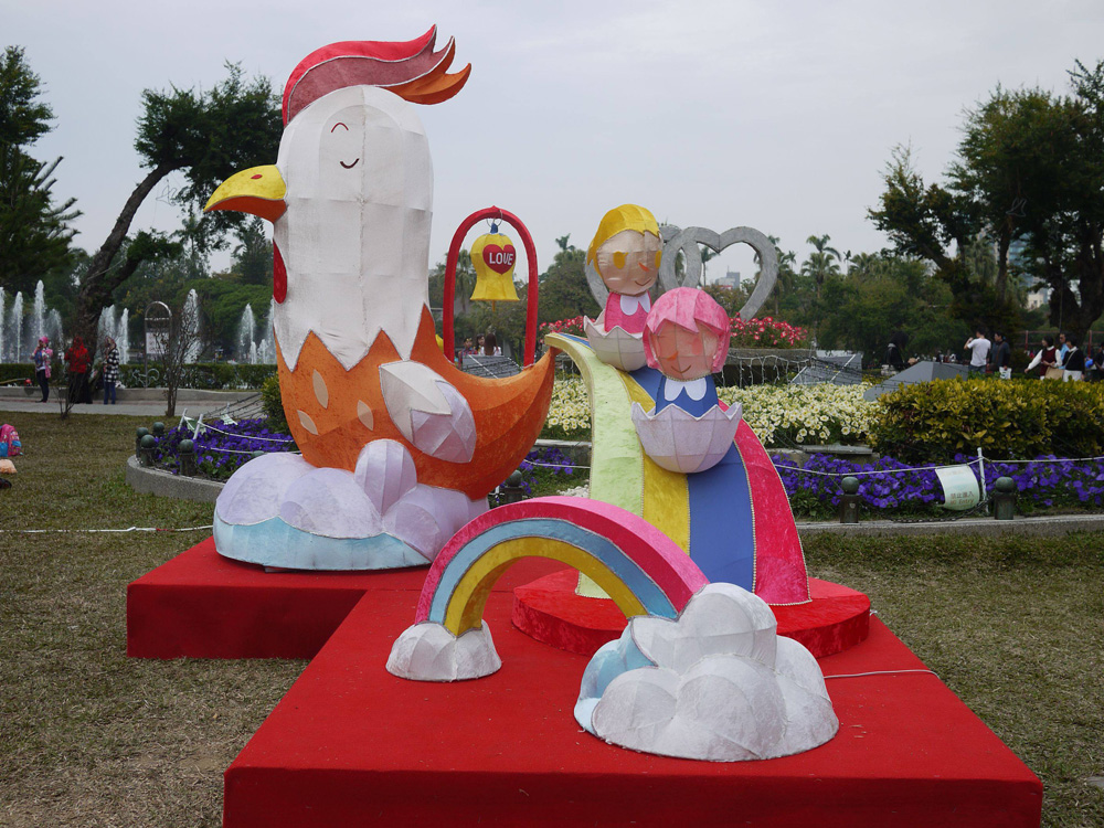每個入口處都有2017中台灣元宵燈會的圖示,今年雞年,所以取個諧音吉年花開。