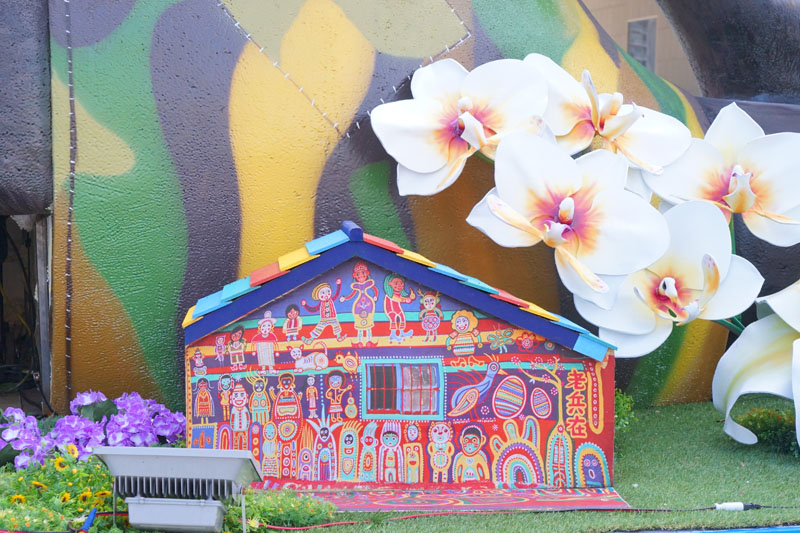 這花車中間,除了吉祥物外,還穿插了不少台中景點,像是上面的湖心亭。