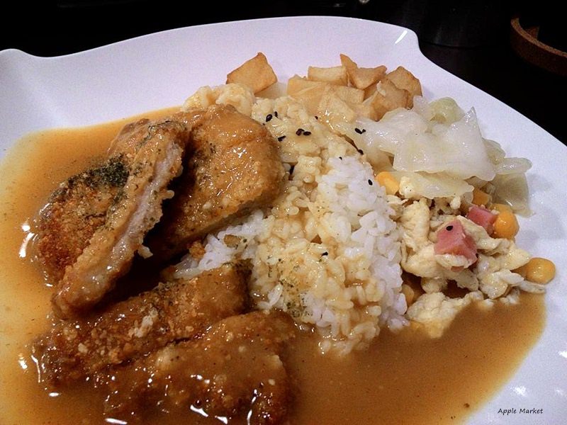 我的台式咖哩炸豬排飯89元。雖然我們點的咖哩口味都寫帶辣,但沒什感覺,大概辣度我們都吃比較重。而這裡出沒的大部分都是學生,口味上清淡點專心讀書也好(會嗎?XD)。