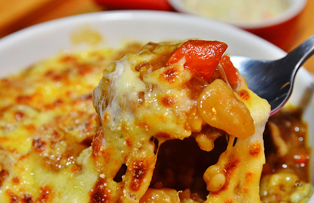 另一份咖哩飯糖糖加了香濃的起司在上頭,這款咖哩飯的咖哩比剛剛的烏龍麵還要濃郁,問了老闆娘,老闆娘說其實兩份咖哩是一模一樣的,只是烏龍麵有加高湯在裡頭。