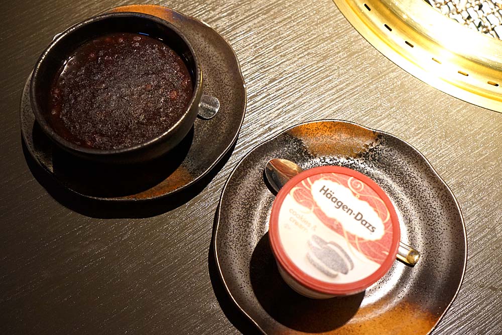 最後的甜點有紅豆紫米湯和哈根達斯可以選擇,原本以為哈根達斯會是一球的,沒想是這一小杯,紅豆湯的部分喝起來蠻稠的,味道也比較重些。