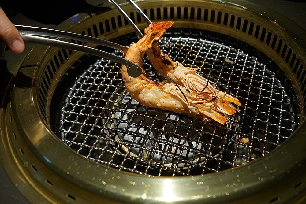 旁邊隨行的人,一個人獨樂樂也太過分了,只見服務生除了代烤外,還會幫忙剝蝦,好吧,這道我只能看看就好。