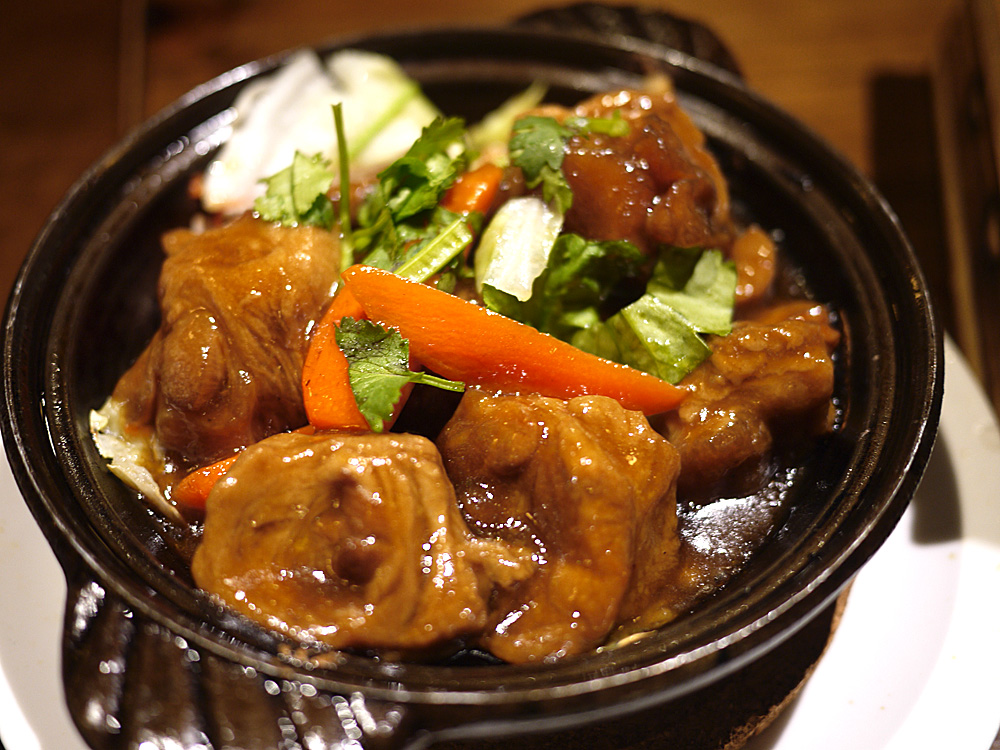 這是新品砂鍋虎掌,在外面很難吃得到這種,是豬的膝關節去炸過後,並用紅燒的方式處理,吃起來有點像是在吃豬腳的膠質,雖然看起來有些肥肉,可是不會太油膩,趁熱吃的口感我很愛。