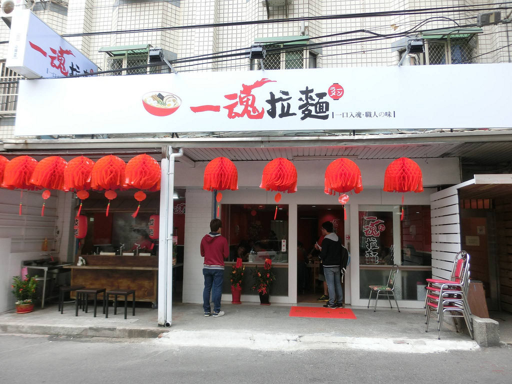 一魂拉麵位在東海三弄走大約2分鐘得左手邊喔!(一弄是很多炒飯炒麵便當的那條街,一弄的右邊那條街是二弄,像是東海挺出名的-老舖關東宅就在那兒唷!二弄的再右邊一條街,也就是一魂拉麵的所在地唷!),店面挺寬敞的,外觀以白色為主,裡頭則是紅色色調。