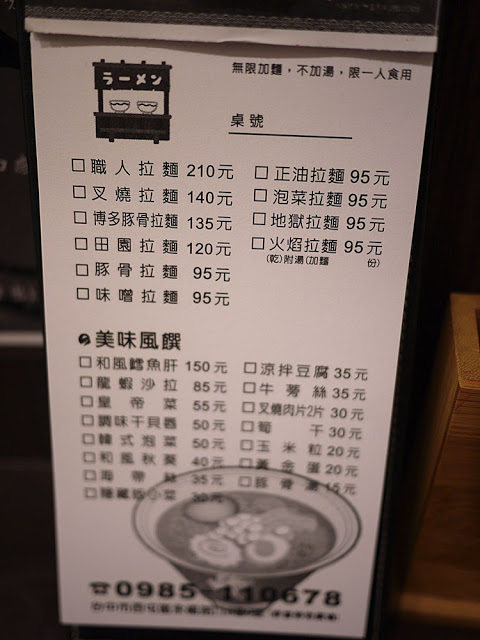 拉麵職人位於西屯區永福路118巷的附近,在肯德基的巷子內,詳細地址上次忘記抄下來有點忘記,不過這家店印象中開好一段時間了,有搬過位置,以前都以為他只是一個小攤車,沒想到還有室內座位耶,那天剛好下雨經過就順便來吃吃看。