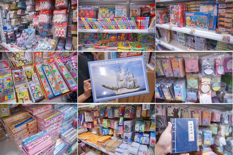 舉凡看到的筆、拼圖、書籍、字典、格尺、貼紙或是筆記本等,通通都有,而且中間一千片的拼圖,竟然只賣一百元….根本比夜市還要便宜。