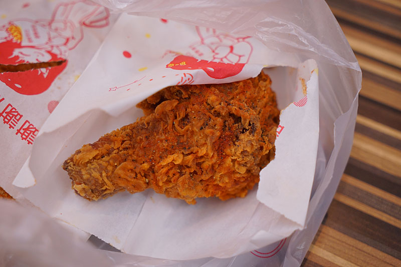 雞腿就選擇大辣,感覺這辣粉更誇張了,一開始還很怕他沒炸熟哈哈,結果吃起來外皮脆脆的,裡面則帶有肉汁,味道是不錯,但辣度一樣覺得還好。