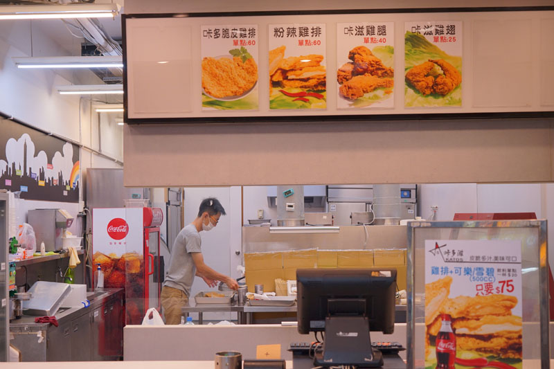 目前只賣上面四種炸物,分別為咔多脆皮雞排、粉辣雞排、咔滋雞腿、咔滋雞翅。