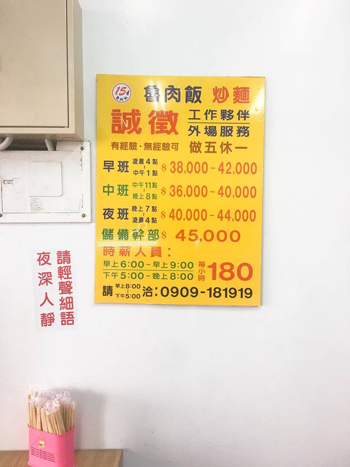 整體而言,24小時營業,深夜肚子餓也有經濟實惠的好選擇,50元就可以吃飽飽,離開時看到牆壁上的應徵工作夥伴,真讓人眼睛為之一亮,以現在普遍的薪資來說,這金額不低耶,就連時薪也有180元,有缺工作的朋友也可以參考看看。