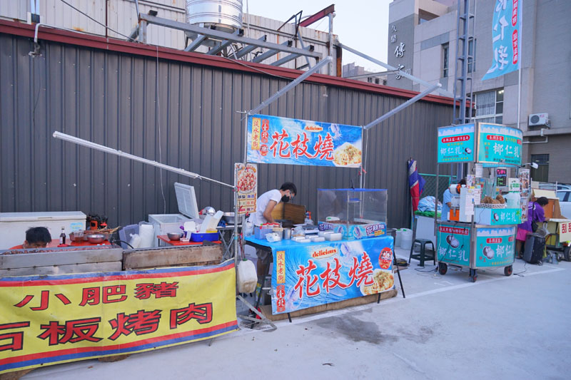 小肥豬石板烤肉、花枝燒、椰仁乳,最右邊還有賣彩券的。