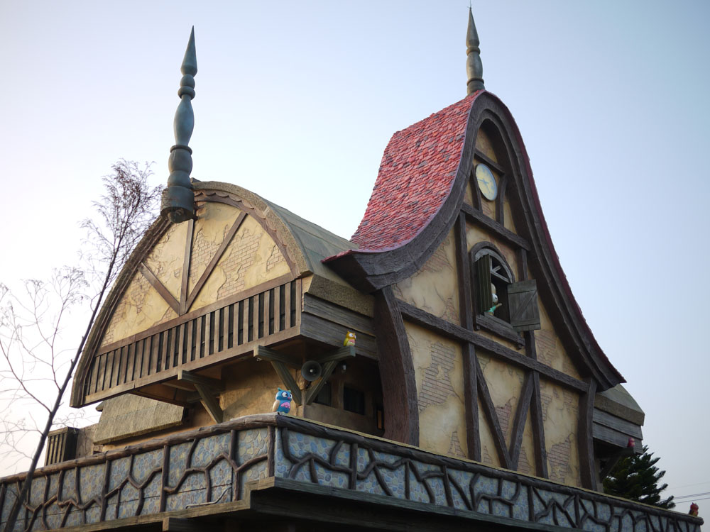 仔細一看,房子上方的窗戶口處,還有一隻可愛的熊熊在觀看著大家呢。