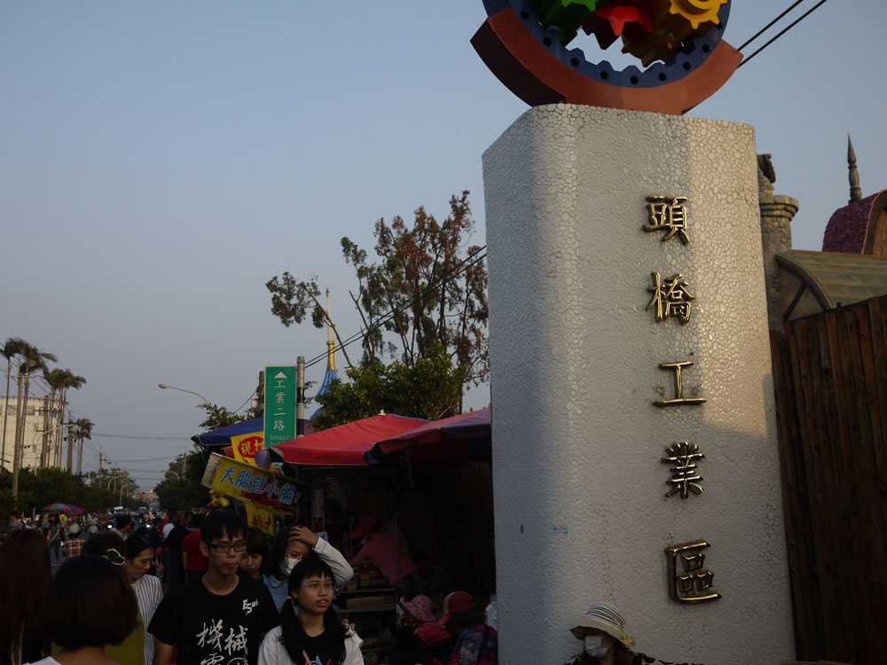 停好車後,走出去就會看到頭橋工業區的地標,這個地方是黃昏市場,同時旁邊就是工業區了。