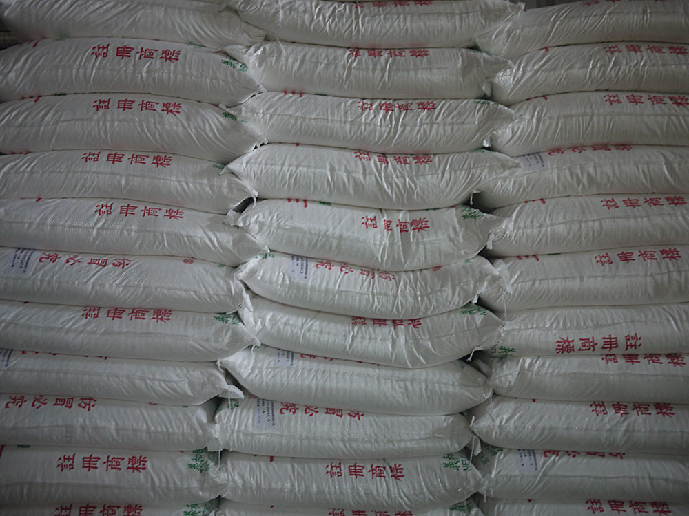 一包包堆疊起來的地瓜粉,是做鹹酥雞的好幫手。