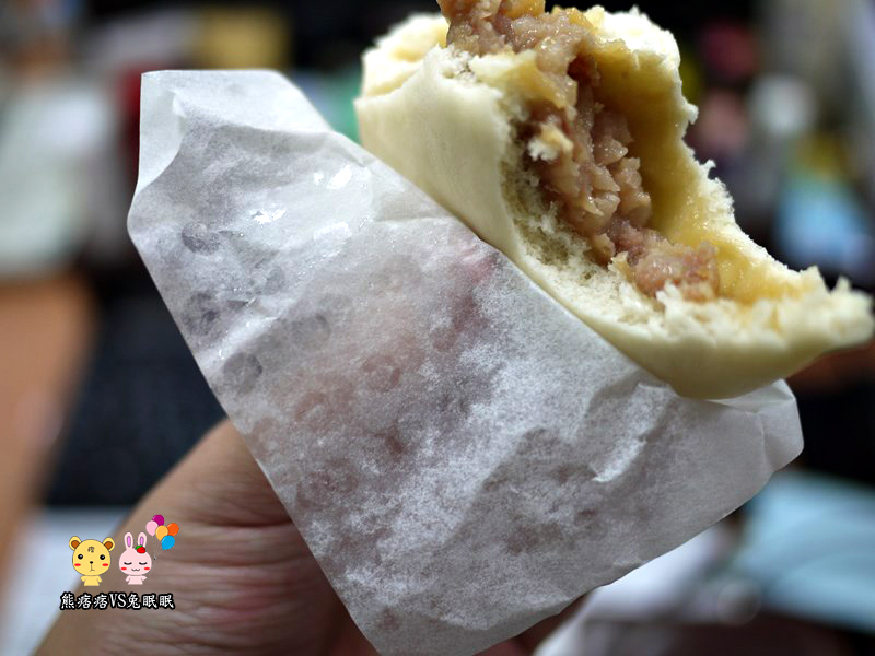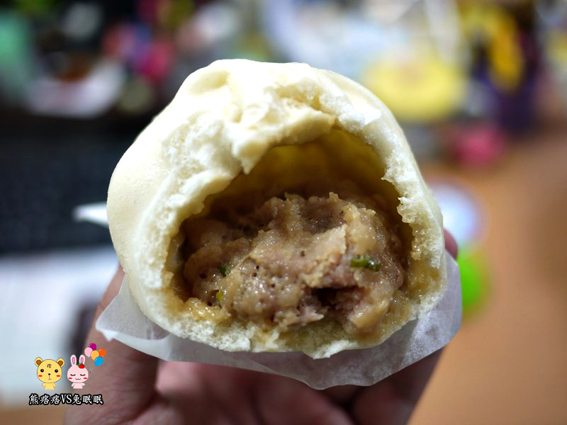 包子皮本身比較鬆軟,咬開後,裡面有香菇、蔥、大腿肉等內餡,夾帶些許的肉汁,餡的味道還蠻香。