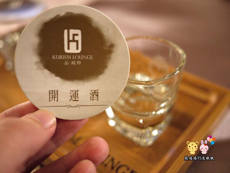 第三杯【開運酒】,這是限量的酒,是三杯中最好喝的一杯,香氣介於【寶月泉】跟【陳高】之中,因為濃度更高,含在嘴中時的酒勁很強,卻又帶點綿密醇厚的甜,吞下去後,渾身就像充滿高梁香,一股暖意也會隨著喉嚨間的呼吸,慢慢浮現而上,這款真是令人驚艷!