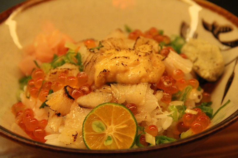 我真的不太敢吃生魚片…卻總是被隱藏老闆找來吃這種日式料理,這次死兔兔還幫廚師嗆聲,果然熊真的激不得…一口就吃掉了一顆生干貝,我的媽呀,生食在嘴巴的感覺真的很怪耶!看來以後要找兔兔出門要先過濾掉一些店比較安全!—-隠藏市政店。