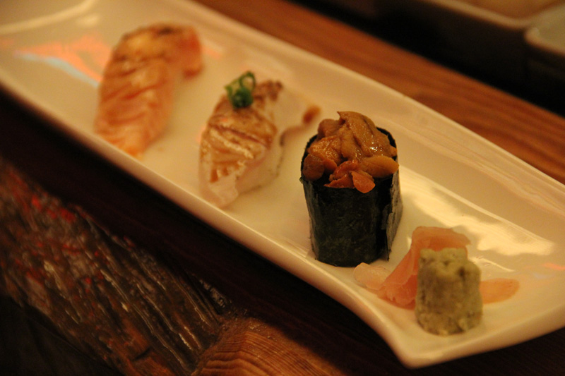 這是額外廚師做給我同事吃的握壽司,店內應該還沒賣,食材上蠻新鮮的,但飯捏的有些緊,有些飯都粘在一起了,建議握的手感上,可以在調整一下會更好。