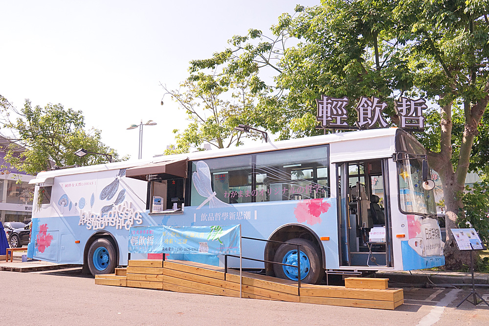 上次要去【富士山55沾麵】跟人談事情的時候,在路上看到一個很酷的飲料店,雖然有點隱密,不是在大馬路上,但一經過就被這巴士的造型給吸引住,名字就叫輕飲哲,說真的如果不是走過去,還真的不知道在賣什麼!