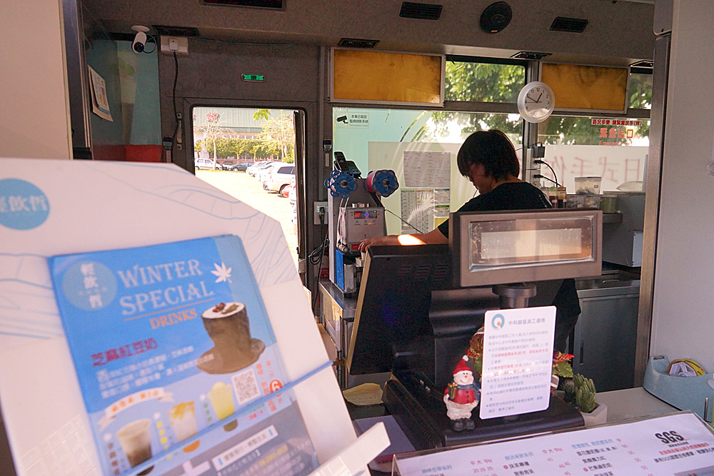 中科飲料店│輕飲哲中科巴士店,乘著巴士賣飲料去,等等先別上車,要買請靠窗