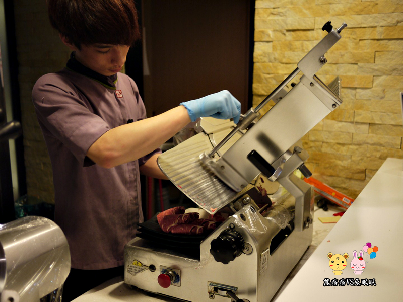 點完肉品後,服務人員就會現切牛肉組成一盤。