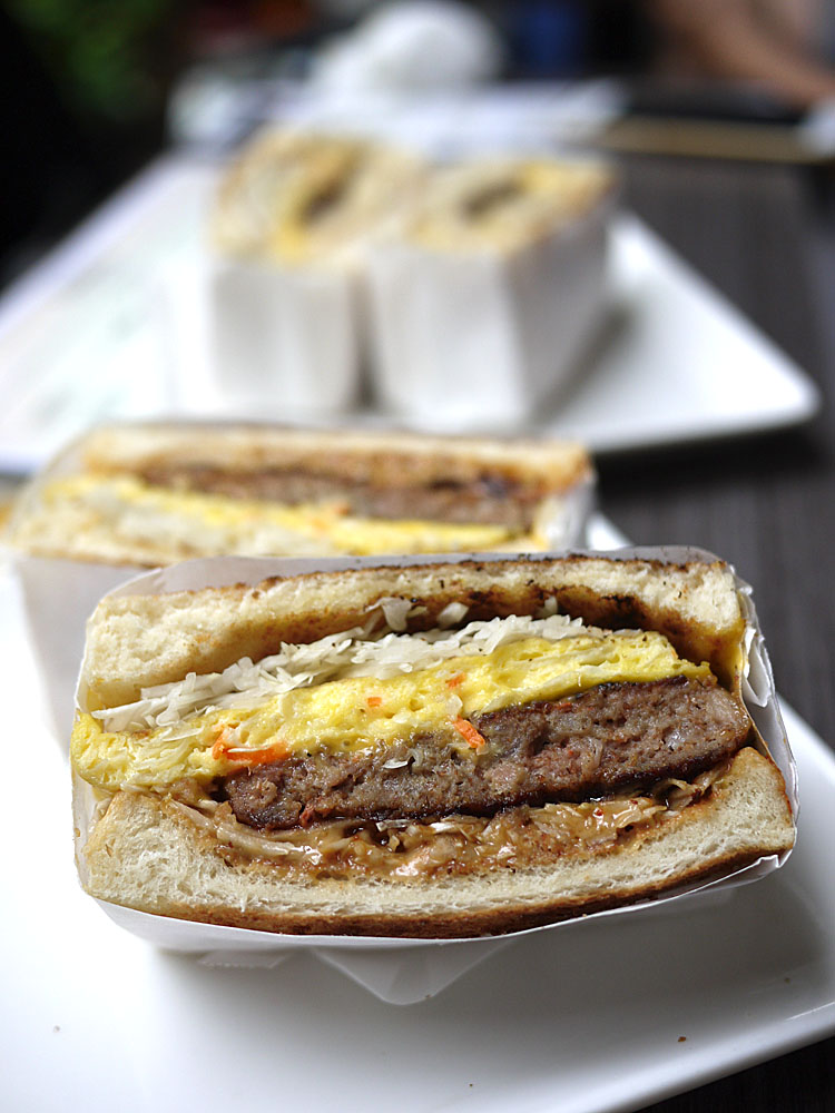其中的手打漢堡排吐司算是這邊的招牌,裡面是混著牛、豬肉依比例下去調製,在用純手打製作而成,吐司本身有點脆脆的,肉排則帶有一些肉汁。