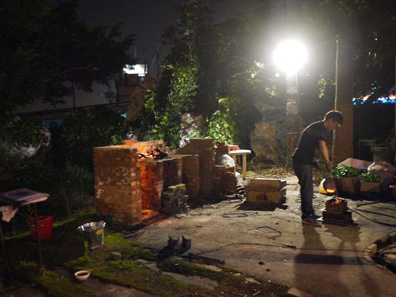 放食材的旁邊,則有工作人員辛苦的在處理木炭,一但火不夠旺就可以請他們來加炭。