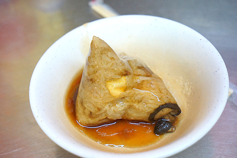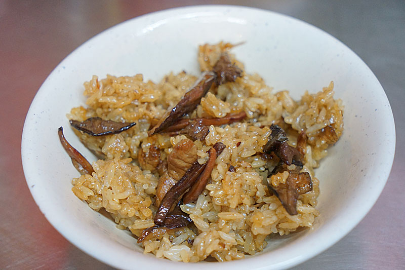 油飯的飯有些Q度有嚼勁,不知道是不是錯覺,總覺得裡面帶有一些胡椒香,用料上有魷魚、肉絲、香菇與蔥酥,肉絲與香菇本身的香氣還蠻重的,魷魚是要入口嚼一嚼後,香氣才會逼得更明顯,值得點一份來試試。