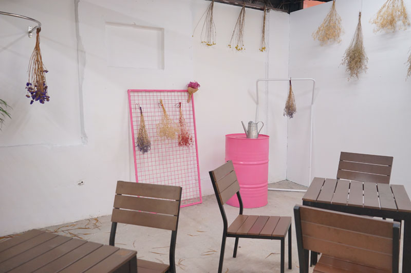 一樓還有提供座位,牆壁上還有一些乾燥花與拍照裝置,這是要讓網美們買完衣服再繼續拍照的意思嗎?