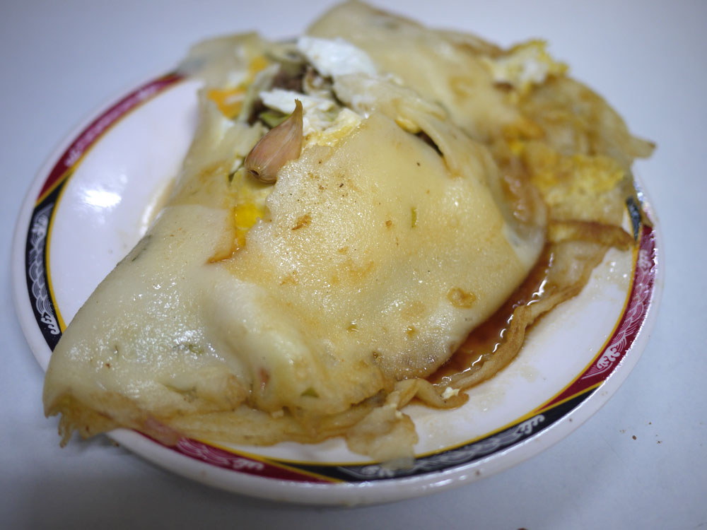味道上偏重些,女生一個人吃會覺得太多,因為蛋餅很軟,基本上要靠夾的輕鬆吃是有難度的,料很多有湯汁,吃的時候要小心,然後可以選擇搭他的特製醬油。