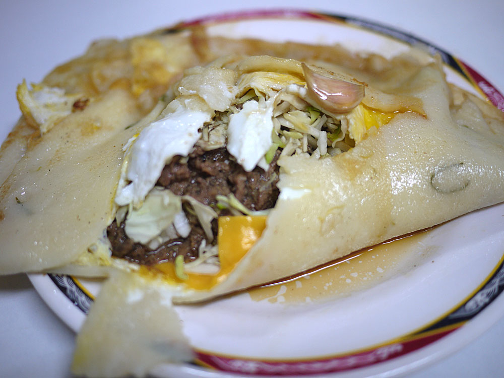起士牛肉蛋餅一個要55元,感覺很貴,實際上那個料多到讓人覺得,歪腰喔,怎麼可以這麼多牛肉,划算拉,裡面還有塞起士片,不過當天覺得牛肉好像剛從冷凍庫拿出來的FU,弱了一些。