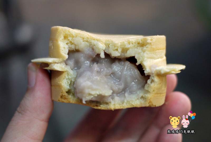 芋頭得內餡聞起來很香,不過因為放太久,有些地方太乾,餅皮部分因為水分都被吸乾了,吃起來略硬。