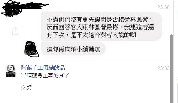 針對告知的部分,粉絲反應並沒有直接告知,而是問了才講,後續店家回覆: