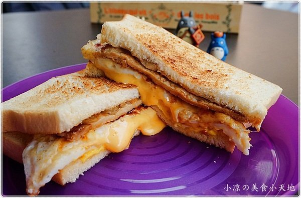 多士號嚴選手工鮮奶土司放入炭火爐烘烤,完整的鎖住土司中的水份,再塗上沙拉醬,配上獨家醃漬過的里肌肉片,荷包蛋,誘人起司~那對切後的模樣,太犯規了~~~
