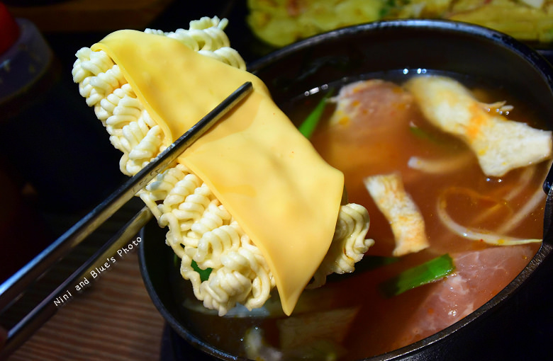 而它的湯頭當然可以吃得到爽脆的泡菜..那微酸卻辣的口感我很喜歡..起司融化的濃郁混進辣香的湯頭中..還有一個蛋在裡面..