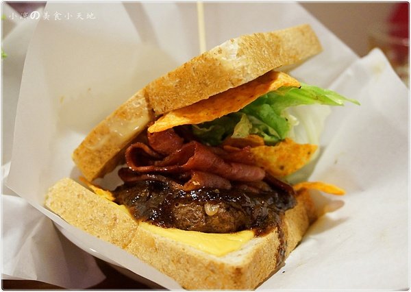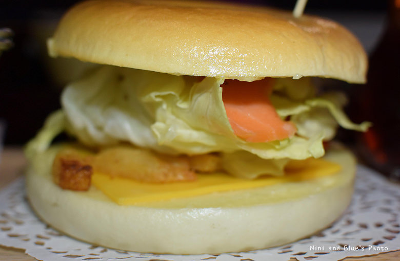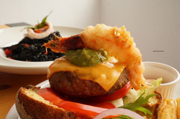 上頭炸蝦不小,又脆又香,自製酪梨醬相當清爽沒有生味,配上厚厚的牛肉漢堡排,疊起來視覺上挺壯觀的。