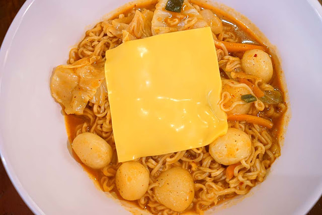加這個是一種類似部隊鍋的概念,加熱後起司會融化在麵條間吃起來有濃厚的起司香,不過湯頭喝起來反而會變成有個奶香XD,而且料跟麵條都還會牽絲這樣。