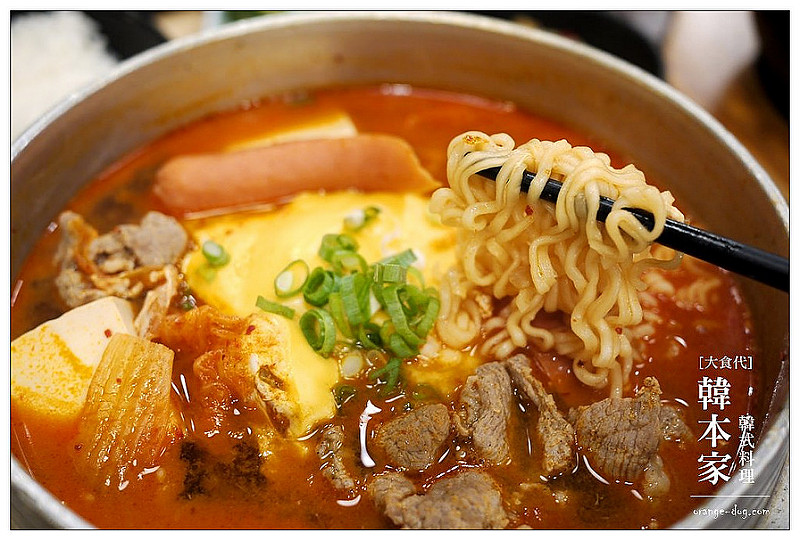 部隊鍋需要的泡麵、起司、泡菜、年糕、韓國火腿等等都有,豬肉給的是完整肉片,不是重組肉,泡麵上頭還有一塊起司,等他和泡麵水乳交融之後,相當犯規。